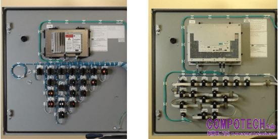 圖 1:採用傳統佈線的 Rockwell 自動化控制台(左)與安森美的 10BASE-T1S 解決方案(右)