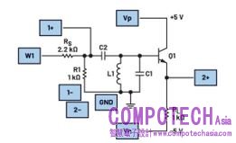 諧振頻率的計算必須考慮第二個耦合電容C2。公式1提供了圖1中電路的諧振頻率: