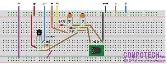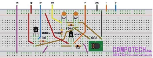 修改無焊試驗板上的電路,增加第二個射極跟隨級Q2,如圖5所示。對電路進行任何更改之前,務必關閉電源並停止AWG。