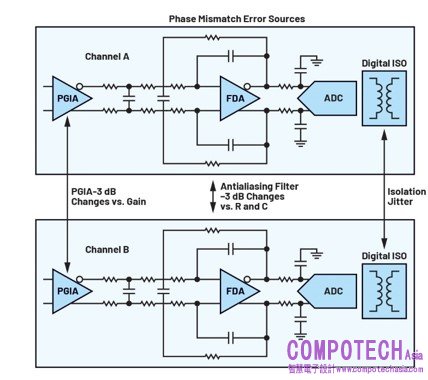 能夠同時透過多個感測器擷取資料的狀態監測系統,通常使用通道間隔離解決方案來消除接地迴路。由於元件容差,板級分立訊號鏈存在較大的通道間相位失配誤差,但 ADI的精密訊號鏈μModule®解決方案採用整合式被動元件(iPassives™)技術,有效降低了相位失配誤差。