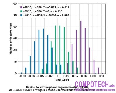為了解決此問題,這兩種多通道IC都有相位校準暫存器,可根據每個通道在不同頻率和溫度下的延遲(比 1/Fsampling更準確,在20 kHz時約為0.5°),調整每個通道的相位(表1)。總體而言,多通道同步採樣ADC雖然存在侷限性,但在大多數情況下都能滿足需求。