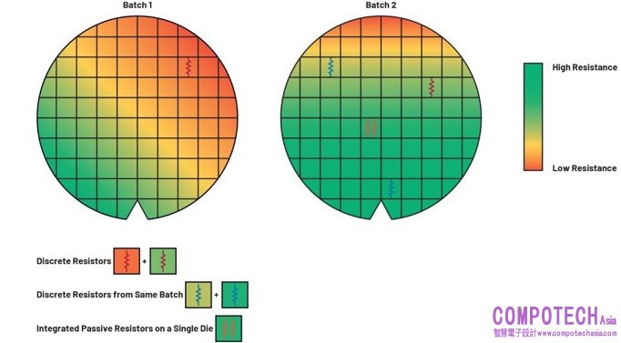 圖10. 相較於分立電阻,ADI的iPassives電阻具有更嚴格的容差和匹配性能7