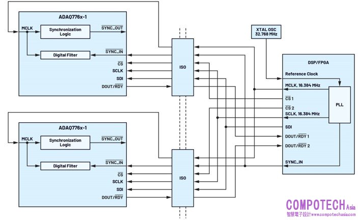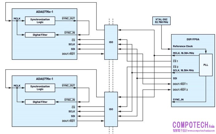 由ADAQ776x-1的隔離單通道組成的CM系統是一種經濟高效的解決方案,可提供媲美同步採樣SD ADC的相位匹配性能。藉由ADI iPassives技術提供的精密電阻, μModule解決方案將可因應RC抗混疊濾波器導致的相位匹配問題。