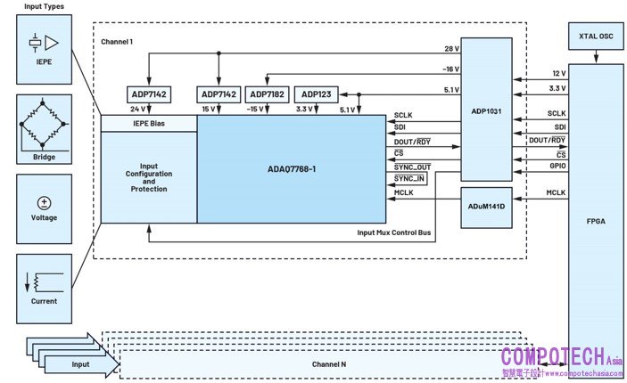 圖14. 採用ADAQ7768-1的通道間隔離高性能DAQ解決方案
