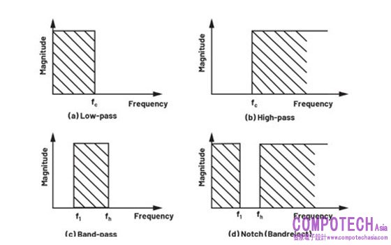 圖1為主要類型濾波器的理想回應狀態。