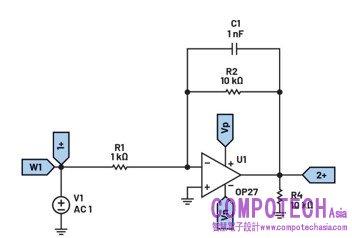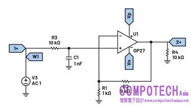 反相放大器低通濾波器電路