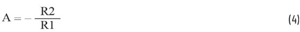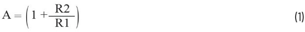 輸出訊號幅度在通頻中以增益A放大,增益A取決於輸入電阻(R1)和回饋電阻(R2),與二者成函數關係。