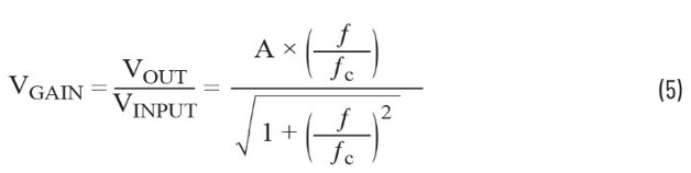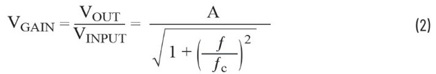 根據以上公式,可以看出,當頻率低於截止頻率時,與頻率有關的電路輸出的增益接近A;當訊號頻率等於截止頻率時,增益值為A/√2;而在頻率高於截止頻率的情況下,輸出電壓隨著訊號頻率的增加成比例下降。