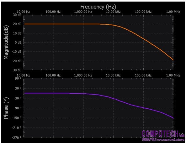 圖7. 反相放大器低通電路頻率響應