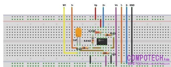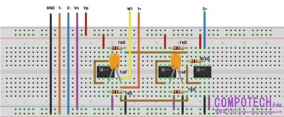 圖15. 主動帶阻濾波器電路試驗板連接