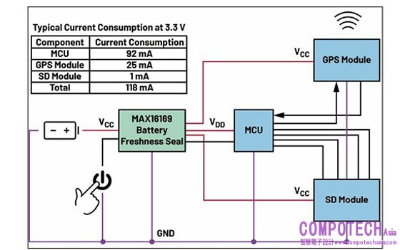 圖1:GPS追蹤器系統中的電池保鮮密封件