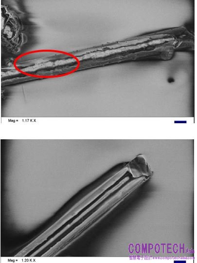圖3:玻璃纖維經過 30 分鐘生物酶催化、歧化反應後,即能有效降解去除表面之樹脂