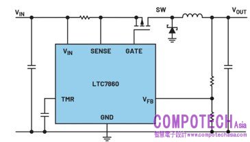 因此,如圖1所示,過壓保護電路可以採用線性設計,或者採用特殊的開關(降壓)DC-DC穩壓器,例如圖2中的LTC7860。簡單的降壓開關穩壓器不適合此應用,因為在此種情況下,N通道 MOSFET無法持續導通。