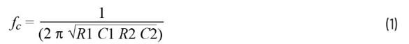 圖1顯示了Sallen-Key二階低通濾波器的基本配置。該濾波器電路具有兩個RC網路,可以為濾波器提供頻率響應特性。R1-C1和R2-C2網路定義濾波器的截止頻率,該頻率可透過下列公式計算得出,