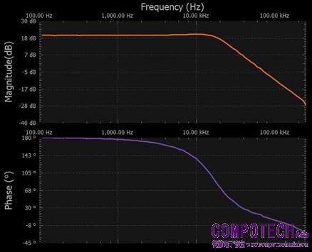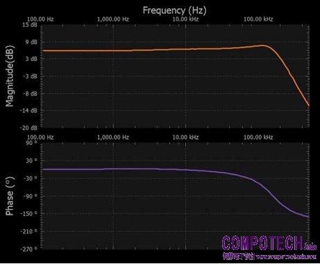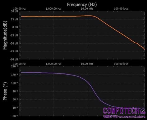 設定為對數掃描,其中通道1設定為參考,幅度設定為200 mV,偏置設定為0 V,樣本計數設定為100。在顯示設定下,將幅度設定為-25 dB至+5 dB,相位設定為-140°至+80°。打開+5 V和-5 V電源,並從30 kHz掃描至300 kHz。參見圖19。