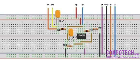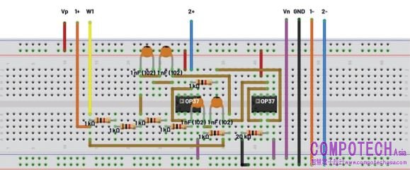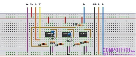 圖14. Tow-Thomas濾波器電路試驗板連接