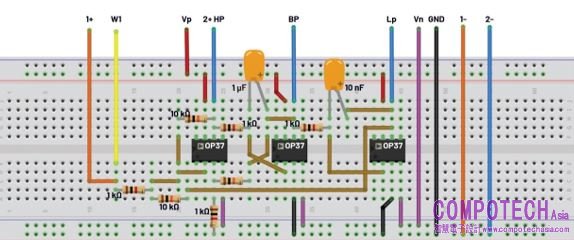 圖11. 狀態變數濾波器試驗板連接