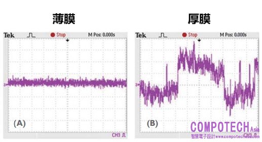 圖3:薄膜電阻和厚膜電阻的雜訊差異(圖片來源:Yageo)