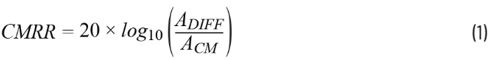 在放大器拓撲之間選擇時,一個需要評估的關鍵因素是放大器電路有效抑制共模輸入電壓的能力(防止兩個輸入端所共有的訊號電壓在輸出端表現出來),同時放大差模輸入電壓。共模抑制比(CMRR)是一個定量指標,用於衡量放大器電路在此方面的能力。CMRR越高,輸出端的誤差就越小。CMRR通常表示為兩個增益之比:差模電壓增益(ADIFF)相對於共模電壓增益(ACM)的值,單位為dB。