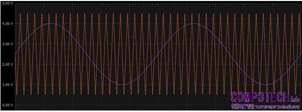 如果調變訊號峰值小於載波訊號的峰值,則輸出將為調變訊號的真實PWM表示。