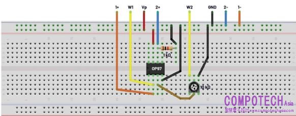 圖14. 用於調整使用觸發器生成PWM訊號電路的工作週期的試驗板電路
