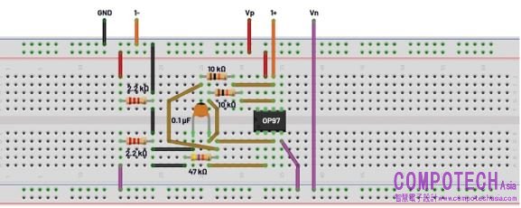 圖11. 使用非穩態觸發器生成PWM訊號的試驗板電路