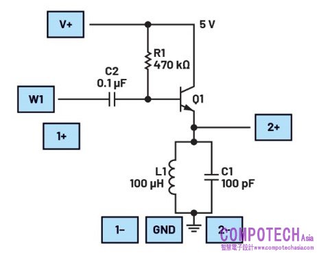 脈衝振盪器有多種類型,適用於不同的應用場景。圖1所示為發射極負載式脈衝振盪器的原理圖。諧振電路也可以放在集電極中,這種情況稱為集電極負載式脈衝振盪器。發射極負載式振盪器和集電極負載式振盪器的區別在於輸出訊號。發射極負載式NPN脈衝振盪器的第一個週期是負週期。集電極負載式脈衝振盪器的第一個週期是正週期。如果使用PNP,則發射極負載式振盪器和集電極負載式振盪器的第一個週期均會反向。