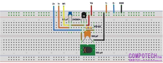圖3.脈衝振盪器電路試驗板連接