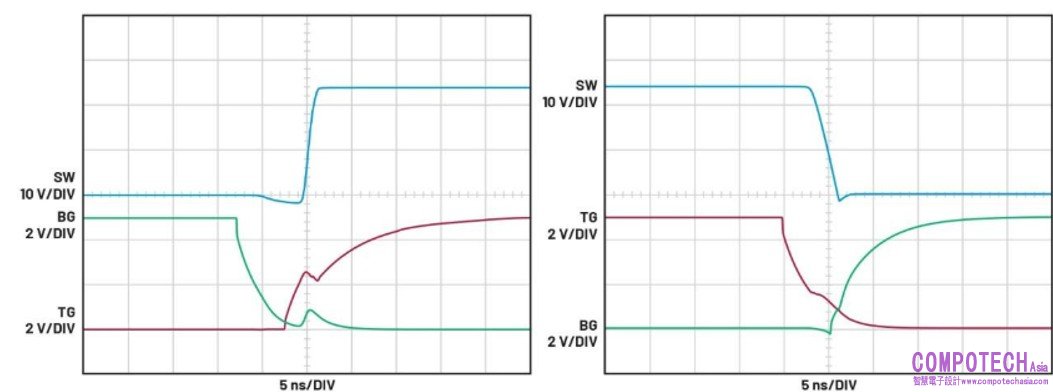 圖6. 示例電路的智慧死區時間近零設置模擬波形