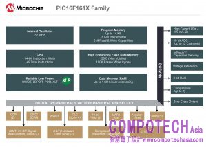 PIC16(L)F161X PIC微控制器可提供具有比例-積分-微分控制(PID)的數學加速器(Math ACC),能夠完成核心獨立運算,如16位元數學和PID運算。此系列微控制器也包含硬體模組Angular Timer(AngTmr),能夠計算在各功能中的旋轉角度,如馬達控制、TRIAC控制或電容放電式點火(CDI)系統。無論速度有多快,AngTmr都無需內核心運算就能夠抵抗來自特定的旋轉或正弦波角度的重複干擾。同時,內核獨立周邊裝置(CIP)可進行配置以實現許多指定功能,增加執行速度,降低軟體要求。若為完成其他工作需要釋放CPU,則可以卸載這些功能,而卸載只需佔用很少的程式記憶體,能降低微控制器的整體耗能。