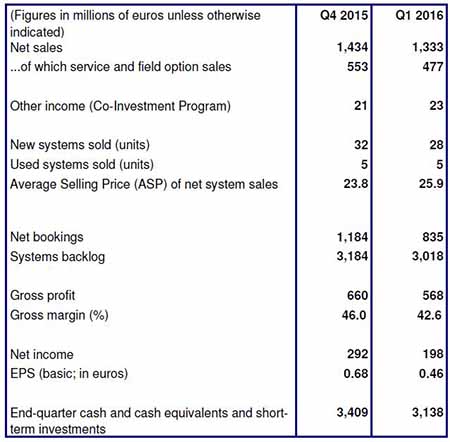 · 2016年第一季營收淨額 (net sales) 13.3億歐元,毛利率 (gross margin) 為42.6%